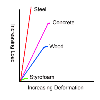 Consider the following common construction materials: Styrofoam, wood, concrete, and steel. Let's assume we have samples of each of these materials and we can test them under increasing compression loads. Following each test we remove the load and measure the sample to see if the material has experienced a permanent change in length (also called "deformation").