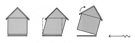 In an earthquake the ground rocks, twists, heaves and subsides, changing direction and speed all the while. Such violent and chaotic ground movement sets buildings in motion. Houses tend to shift off their foundations and some structural elements may overturn (Figure A). Houses literally come apart at the seams, section by section and piece by piece. But woodframe houses, if properly attached to the foundation and tied together structurally, can resist seismic loads and reduce the likelihood of earthquake damage.